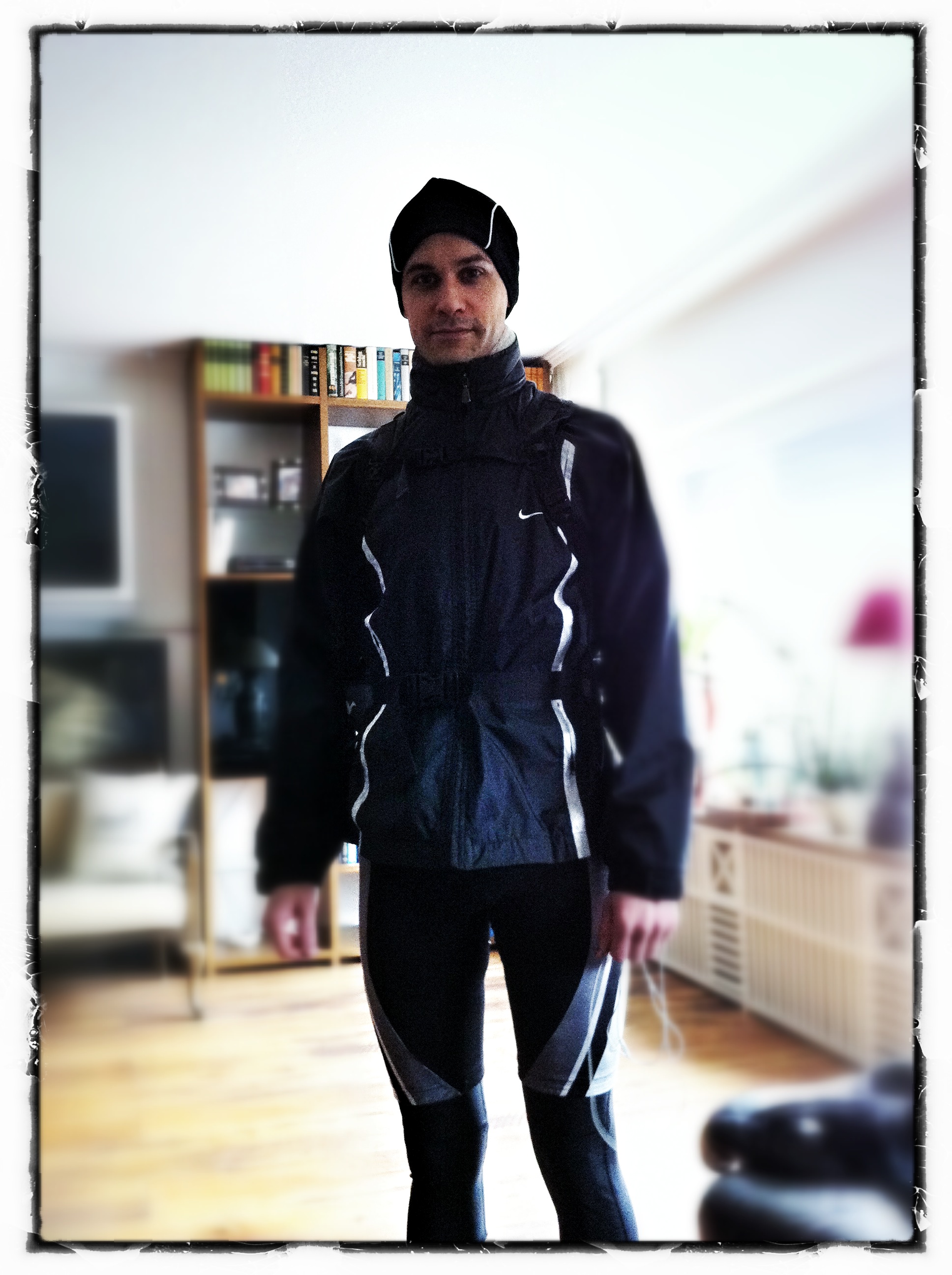 Heute habe ich den großen Test gestartet. Bei -5 Grad zog ich also meine Sommer-Bikekleidung an und stülpte mir die Arm- und Leg-Warmer über. Hier ein Bild wie ich ausgesehen habe: